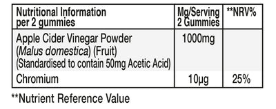 Our apple cider vinegar gummies contains a massive 1000mg per serving. Furthermore, each gummy is packed with chromium that contributes to the normal macronutrient metabolism and maintenance of normal blood glucose.
